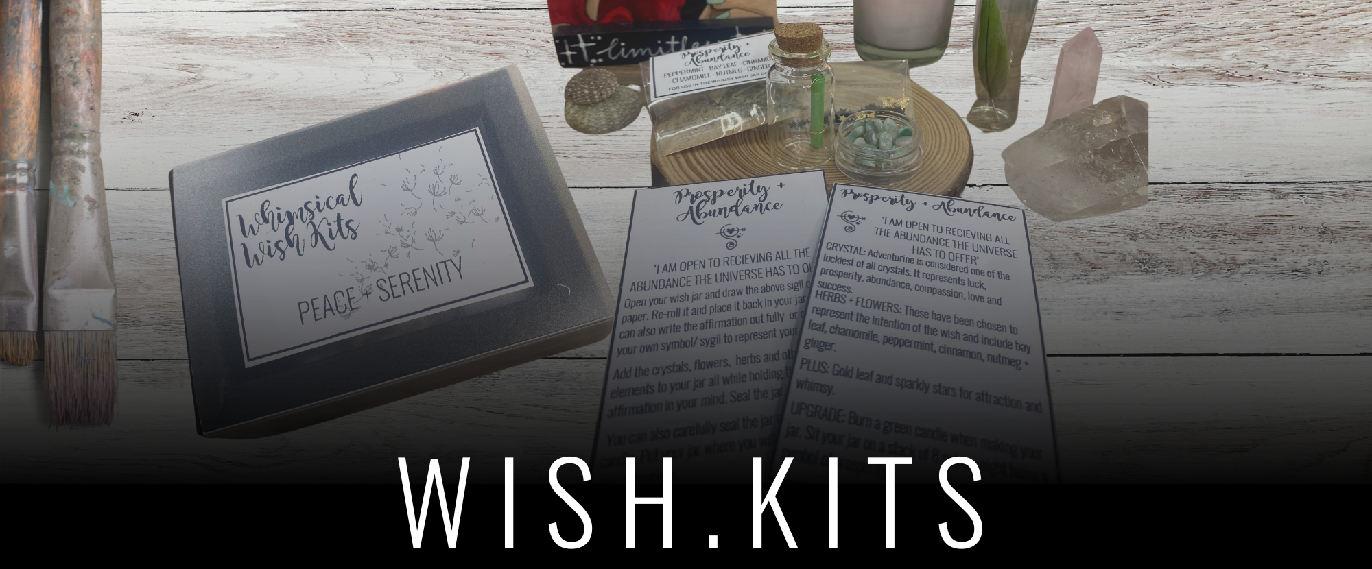 Each kit includes enchanted items like crystals, candles, affirmations, and other whimsical treasures to guide your intentions and wishes.